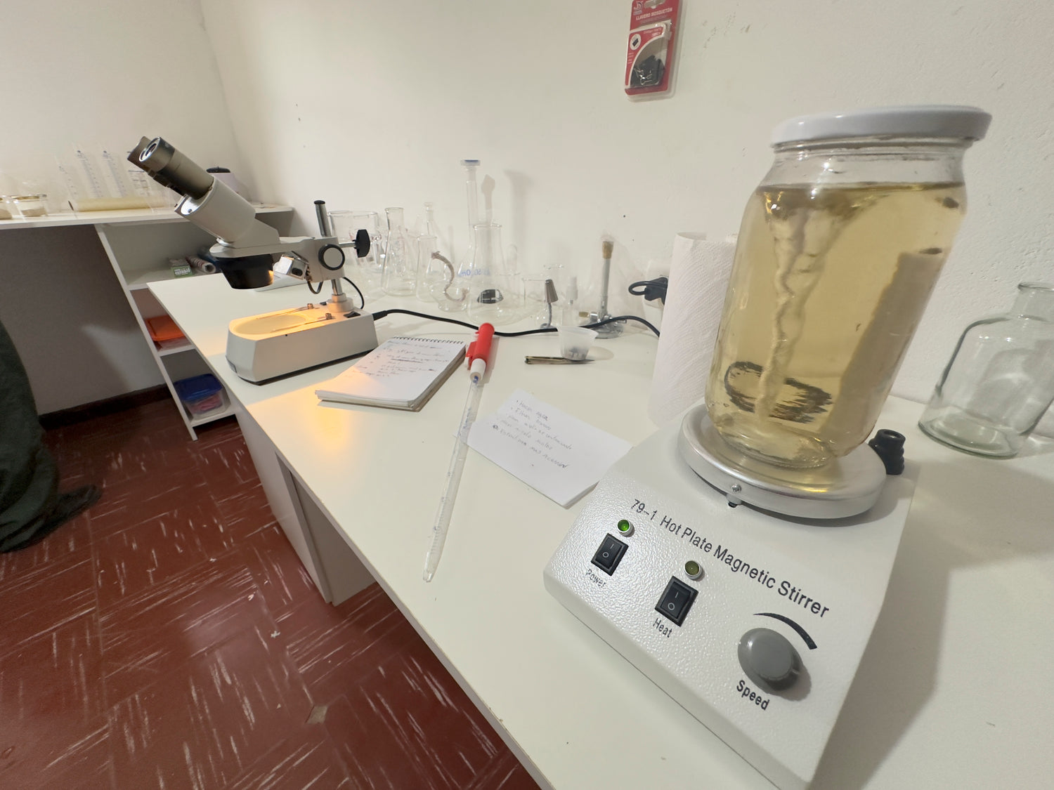 En el laboratorio se reproduce el micelio recolectado en medios líquidos agitados, lo que permite acelerar su crecimiento y mantener una distribución uniforme de nutrientes y oxígeno. Este método es clave para obtener biomasa de calidad.