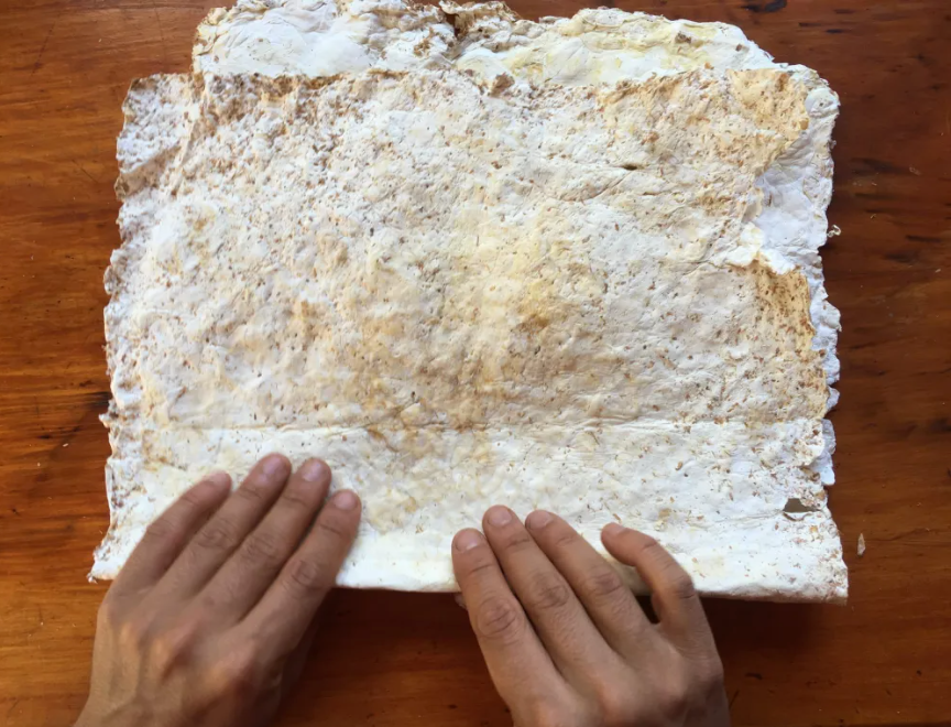Este micelio se cultiva sobre desechos agrícolas, formando una red tridimensional y luego se comprime para obtener un material 2D que imita la textura y apariencia del cuero animal.