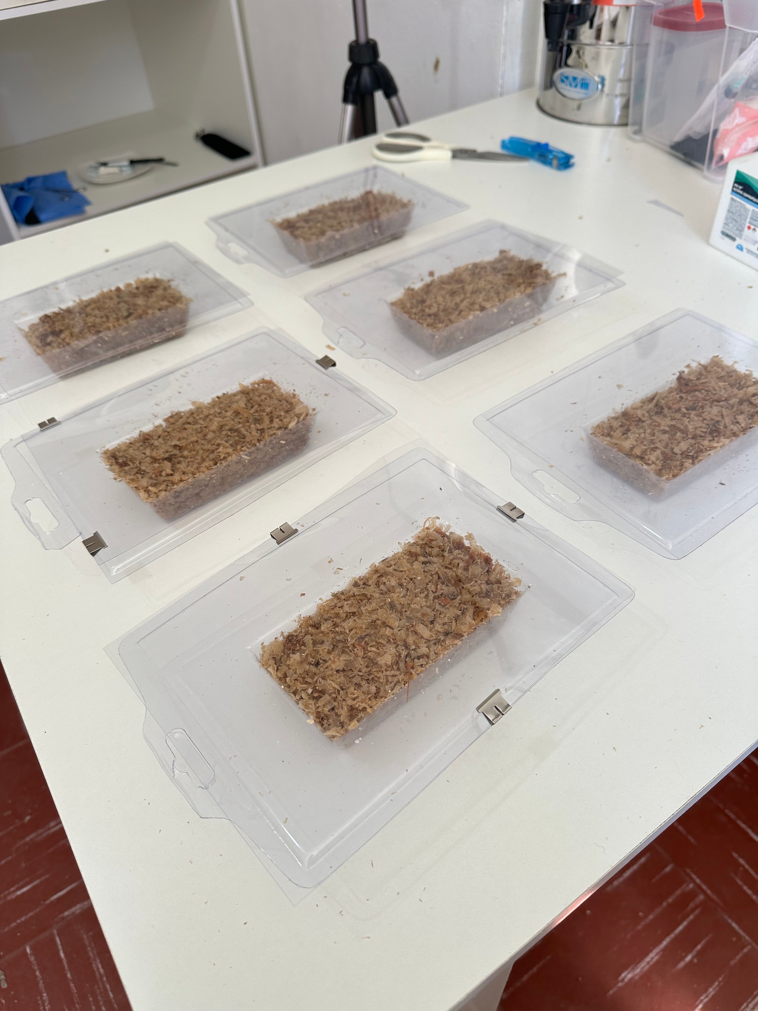 El micelio se comporta como un “biopolímero vivo"....se coloca en un molde con un sustrato vegetal (paja, aserrín, bagazo, entre otros), coloniza el material y lo compacta, generando una pieza sólida que adopta la forma del molde. Este proceso permite diseñar bloques, paneles, ladrillos, placas curvas o incluso estructuras orgánicas complejas.