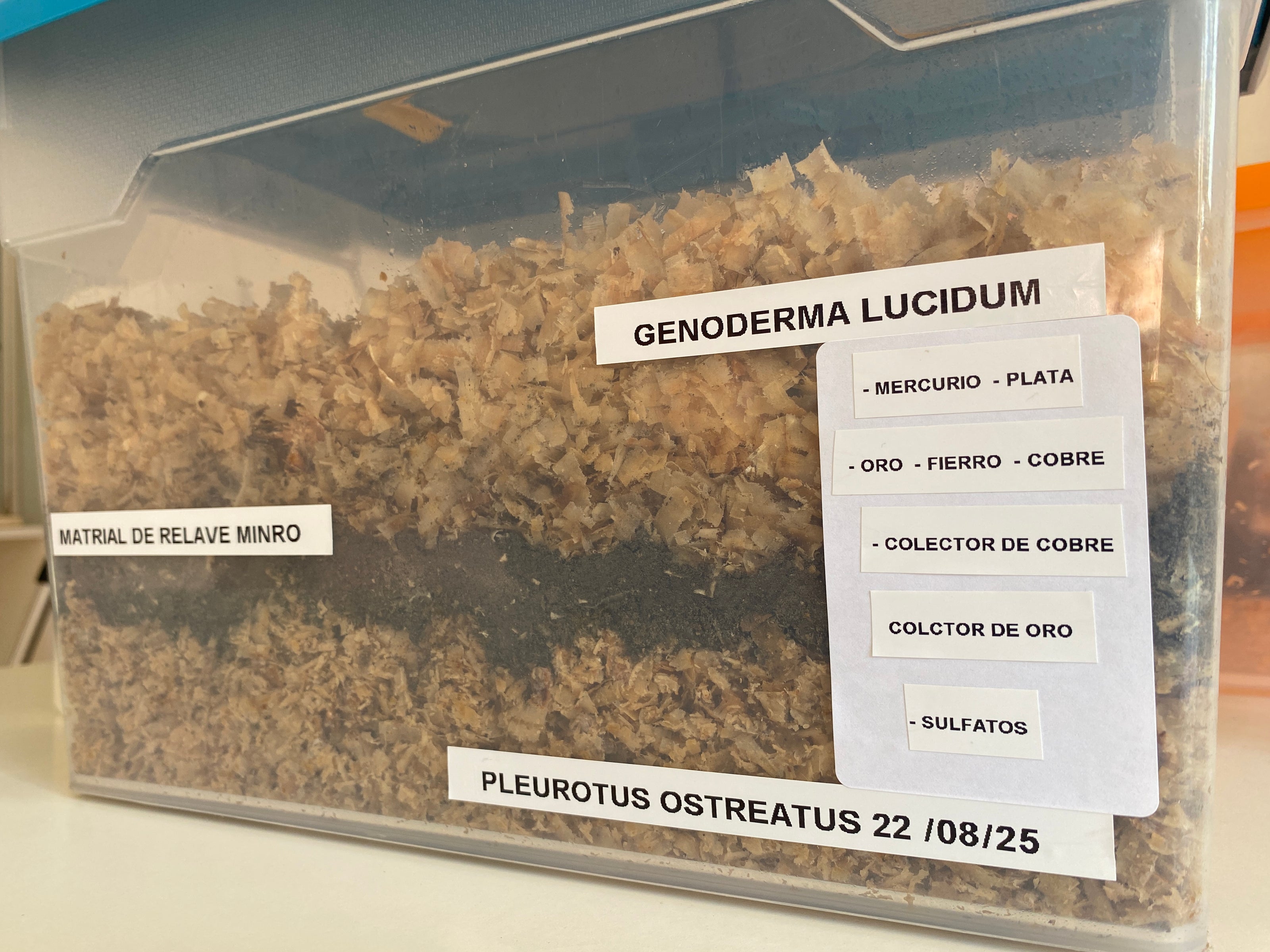 Este diseño Piloto estratificado permite que los hongos interactúen con los contaminantes, iniciando un proceso de degradación, absorción y transformación de sustancias tóxicas, abriendo el camino hacia soluciones sostenibles para la minería y el medioambiente.